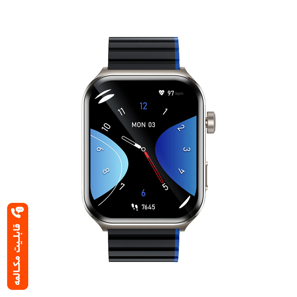دو دکمه فیزیکی در سمت راست کیس وجود دارد. این ساعت هوشمند دارای واچ فیس های مختلف است و در رنگ های مشکی و آبی موجود است.