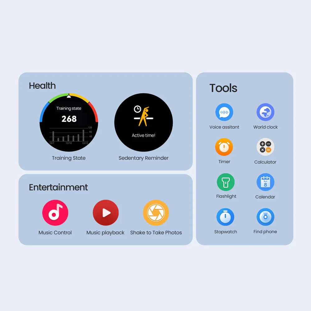 سایر ابزارهای این ساعت هوشمند شامل موارد زیر می باشد: