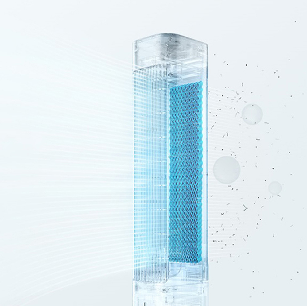 پنکه تبخیری هوشمند شیائومی Mijia در حالت “هوای سرد” از پرده فیبری مرطوب بهرهمیبرد که علاوه بر خنکسازی، نقش مؤثری در تصفیه هوا ایفا میکند. این پرده با جذب ذرات گرد و غبار و پرزهای معلق در هوا، نسیمی مرطوب و پاکیزه تولید میکند که حس طراوت پس از باران را در فضای داخلی بازسازی میکند.